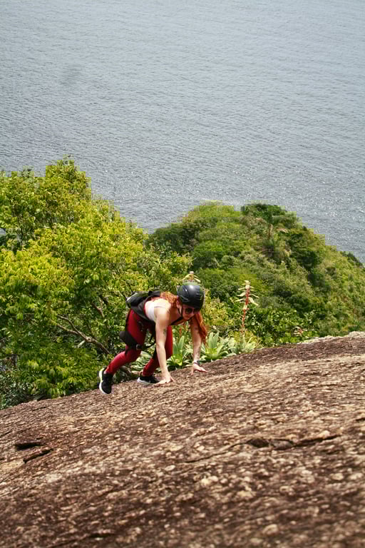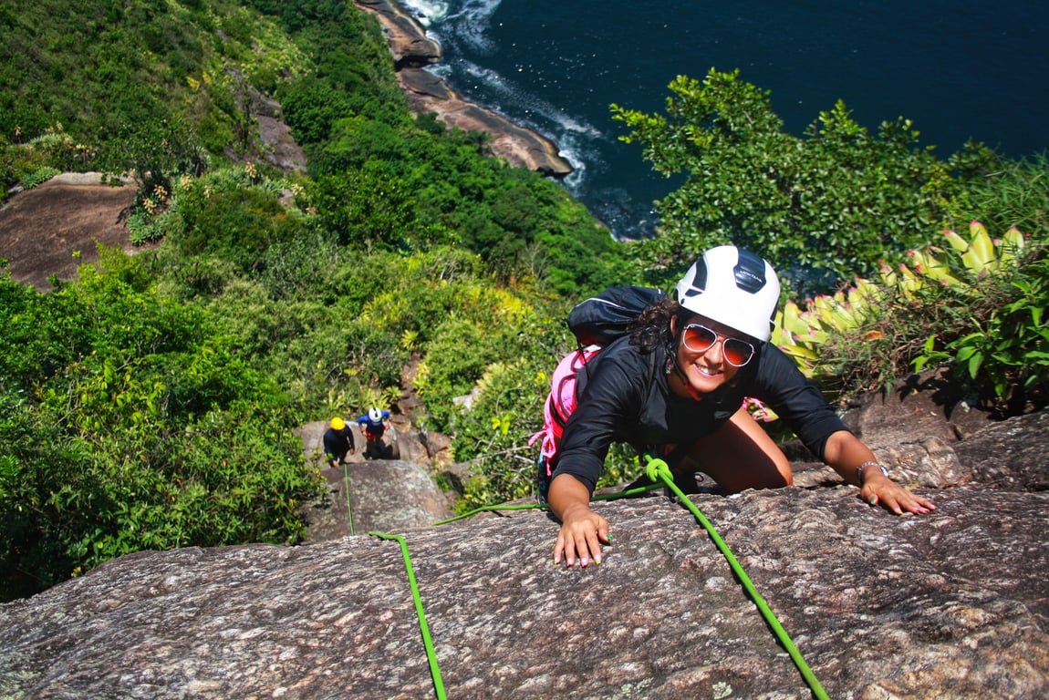A trilha oferece vistas belíssimas para a Baía de Guanabara e as praias do Rio de Janeiro. Subimos fazendo pausas e aproveitando os mirantes para admirar a paisagem. Essas vistas são privilégios exclusivos daqueles que escalam!