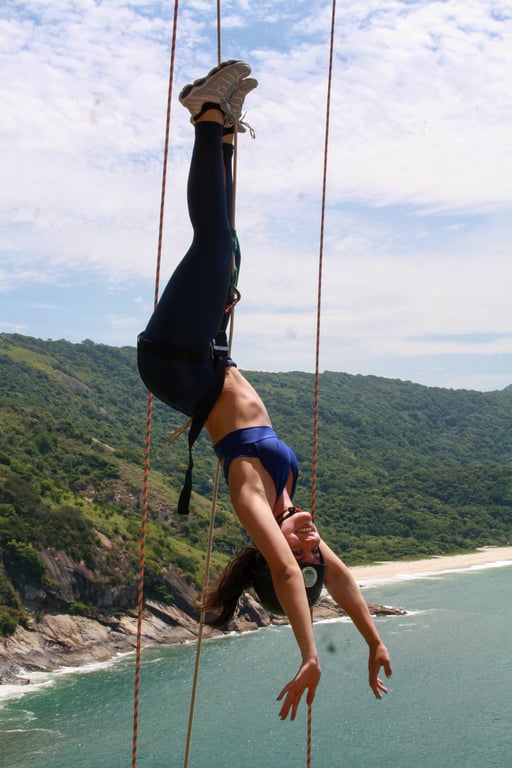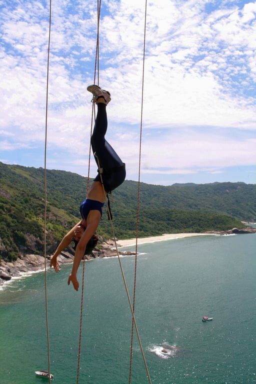 O rapel de 45 metros proporciona uma experiência emocionante, com uma descida íngreme que revela a grandiosidade da paisagem ao redor.Para quem busca ainda mais adrenalina, o pêndulo é uma opção imperdível, combinando a liberdade de um balanço suspenso com a beleza da natureza.