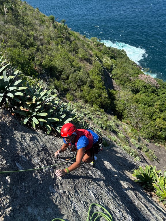 A via Coringa tem 110 metros escalados em três enfiadas, uma delas bastante vertical. É a via mais bonita do Pão de Açúcar nesta graduação. Ela está em um setor de beleza ímpar, de onde se vê apenas paredes verticais, floresta e mar. A Coringa termina no Costão do Pão de Açúcar, a via normal na face leste, onde será necessário escalar mais um trecho de 20 metros. A partir daí segue-se para o cume, pelo Costão ou por alguma de suas variantes, com vista para a Praia Vermelha e de Copacabana. Entre caminhada, escalada e descida são necessárias de 4 a 5 horas. Assim como na Via dos Italianos, não se deve substimar a graduação da Coringa, quem não está acostumado com a aderência do granito, pode estranhar. Para a Coringa nossa sugestão é que você esteja escalando confortavelmente quarto grau em rocha.